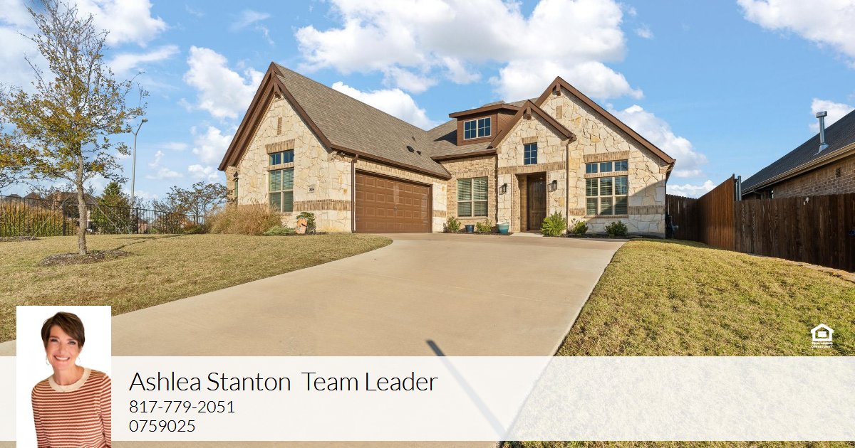 This two year old one owner home is the perfect mixture of elegance and comfort. Step into a great open floorplan, perfect for entertaining. Formal dining or living space gives you flexibility based on your preferences. Large study with French doors has a closet and could be used as a fourth bedroom. Huge living and kitchen area with so many extras. Custom window shades, gas fireplace, gas range, large walk in pantry and massive island. Wood look tile floor throughout the main areas. Guest bathroom has a double vanity and separate area for toilet and bathtub. Primary bedroom features large windows and an ensuite bath with garden tub, separate vanities and huge walk in closet. Step outside to the most beautiful view from your covered patio. Excellent location in a desired community within walking distance to Bailey Lake and just a few minutes from Old Town Burleson. Don't miss out on the opportunity to make this one your own.